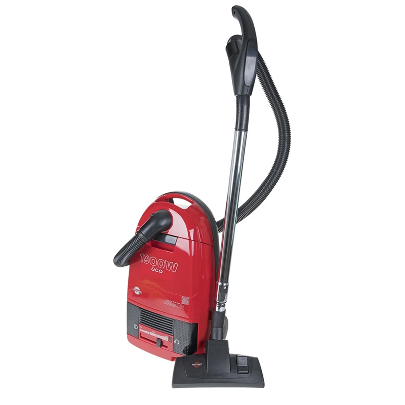 جاروبرقی «پارس خزر» مدل «ECO 1900W» دستگاهی باکیفیت و کاربردی است که از جاروبرقیهای کیسهدار ساخت این شرکت محسوب میشود. موتور این جاروبرقی با توان 1900 وات، از قدرت مکش آشغالها از انواع سطوح بهره میبرد. مکش دستگاه از طریق دکمهی اسلایدی روی بدنه قابل تنظیم است. مخزن زبالهی جاروبرقی ECO 1900W پاکتی کاغذی و یکبار مصرف است که بعد از پرشدن باید تعویض شود. پاکتهای کاغذی، کارکرد بهداشتیتری نسبت به کیسههای پارچهای دارند؛ اما به دلیل یکبار مصرفبودن به خرید مداوم آنها نیاز است. چراغ نشانگر روی بدنه، شما را از زمان مناسب تعویض پاکت مطلع میکند. سیم جاروبرقی حدود 5 متر طول دارد و توسط پدال مخصوص بهطور اتوماتیک جمع میشود. خرطومی جارو به صورت 360 درجه میچرخد و به این ترتیب کار با دستگاه در زوایای مختلف آسان شده است. جاروبرقی ECO 1900W دارای میکروفیلتر مخصوص تصفیهی غبار است تا هوای خروجی دستگاه، سالم و بدون ذرات آلرژیزا باشد. وجود نوار ضربهگیر در اطراف دستگاه از آسیبدیدن دیوارهای خانه بر اثر ضربهی جارو جلوگیری میکند.